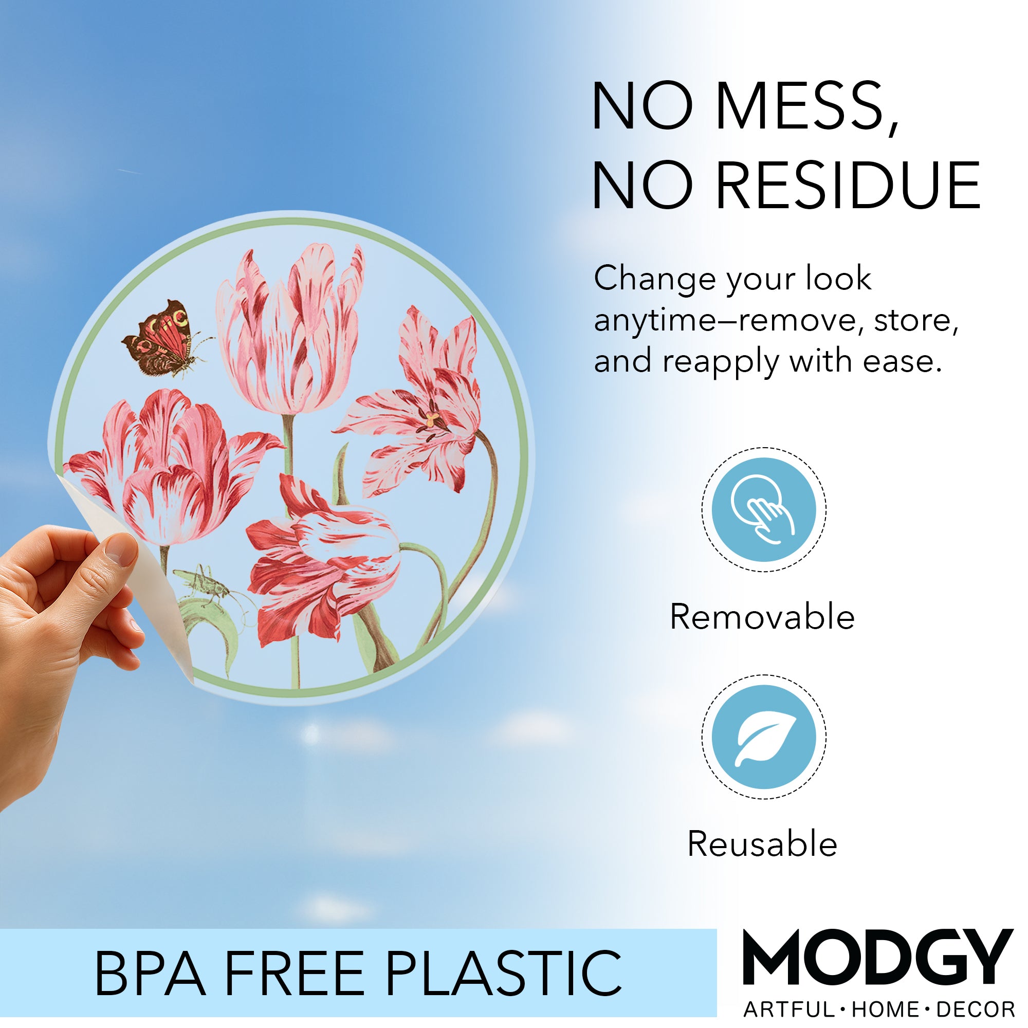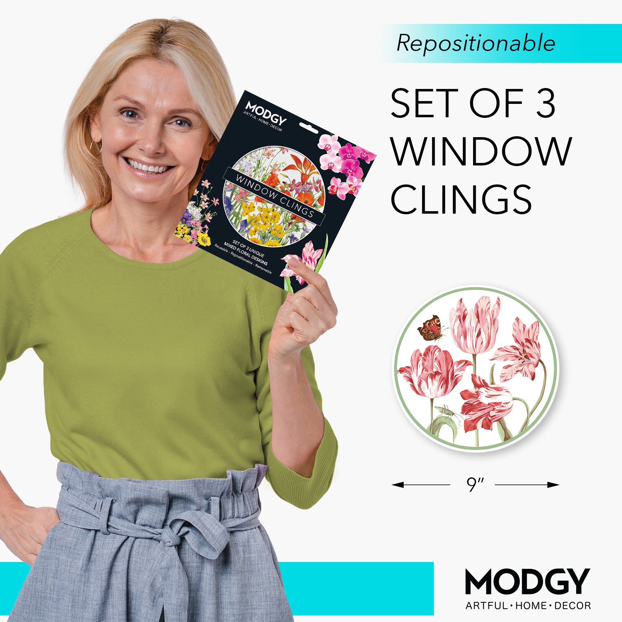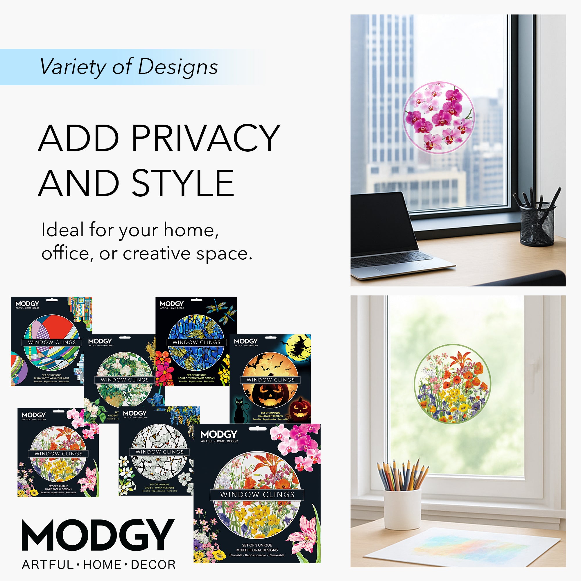 Modgy Window Clings bring art and style to your windows with vibrant, repositionable designs that transform sunlight into colorful displays. Each pack includes three unique designs, perfect for mixing, matching, or spreading throughout your space. Easy to apply—just peel and press—they cling without adhesives and leave no residue. Reusable and removable, they’re ideal for adding privacy, personality, and a pop of color to any glass surface at home, in the office, or in the classroom.